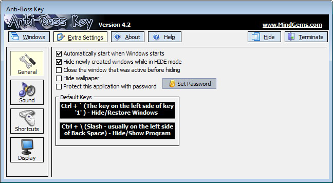 - Anti-BossKey will hide tray icons in the tray notification area.