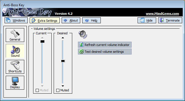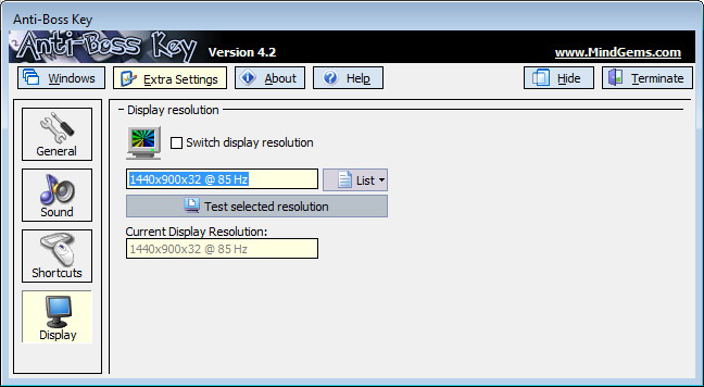 - Anti-Boss Key will switch display resolution to the one that you usually use (Useful when playing games or watching a movie)